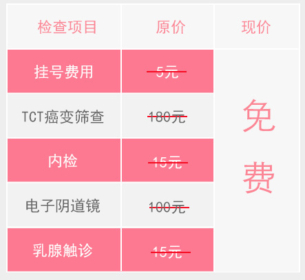 活动期间电话咨询或网络咨询预约的女性可享:人流、宫颈糜烂360元健康基金的优惠(检查、治疗或手术时可抵部分现金)